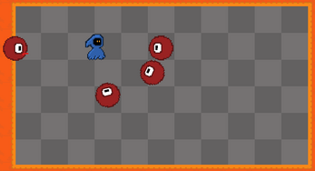 The colour of the player and bullets corresponds to how much health you currently have: